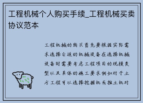 工程机械的购买首先要根据实际需求选择合适的机械设备。在选择机械设备时,需要考虑工程项目的规模、类型以及具体的施工要求。例如,对于土方工程,可以选择挖掘机或推土机;对于混凝土施工,可以选择混凝土搅拌车或泵车。还需要考虑机械设备的品牌、性能、质量和售后服务等因素,以确保购买的机械设备能够满足工程项目的需...